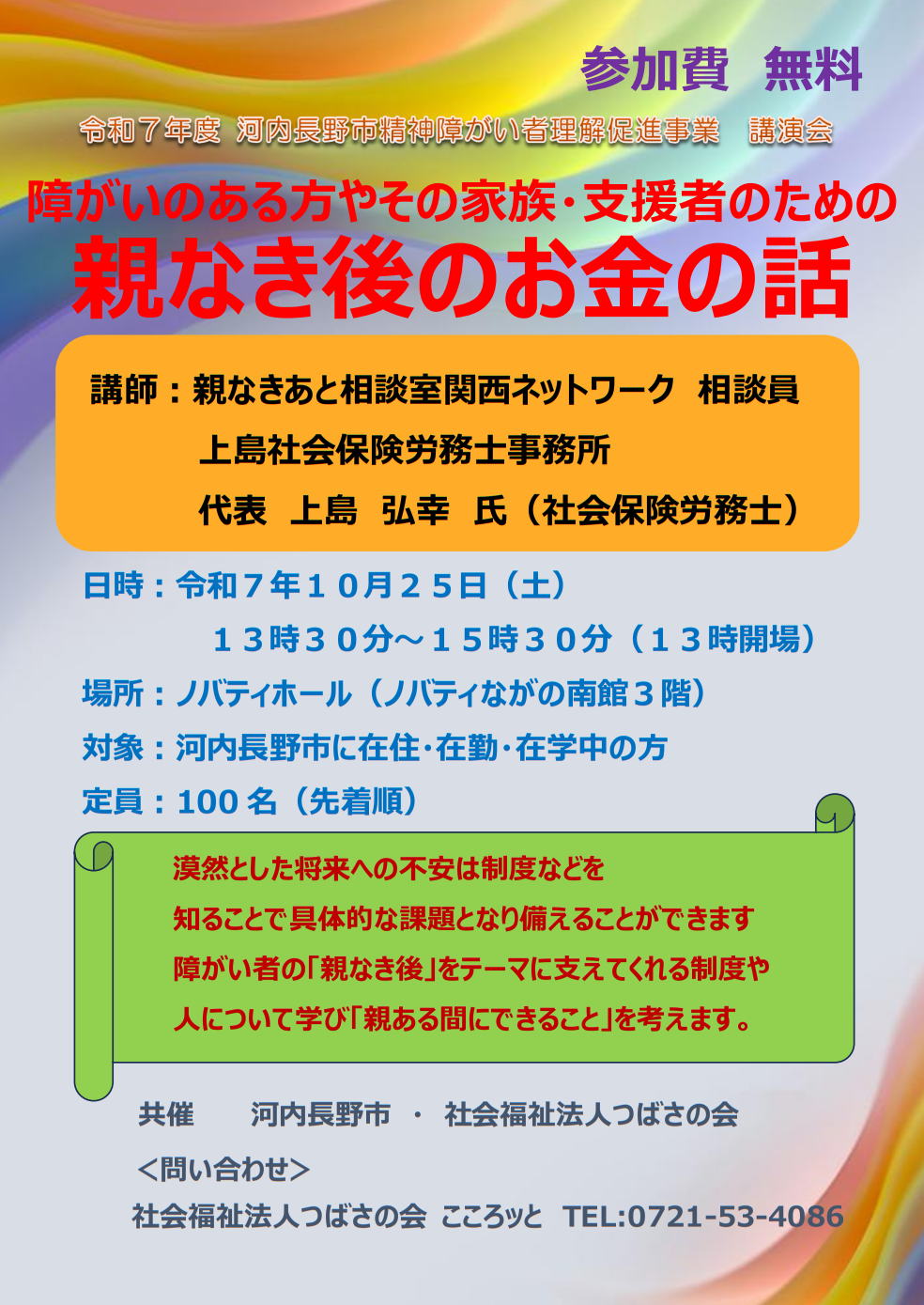 令和7年度 河内長野市精神障がい者理解促進事業 講演会